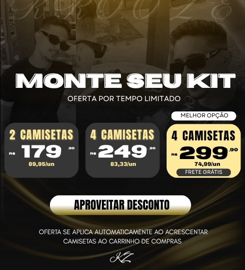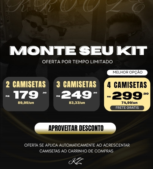 MONTE SEU KIT DE CAMISETAS: 2 Por 179 | 3 Por 249 | 4 Por 299 + Frete Grátis